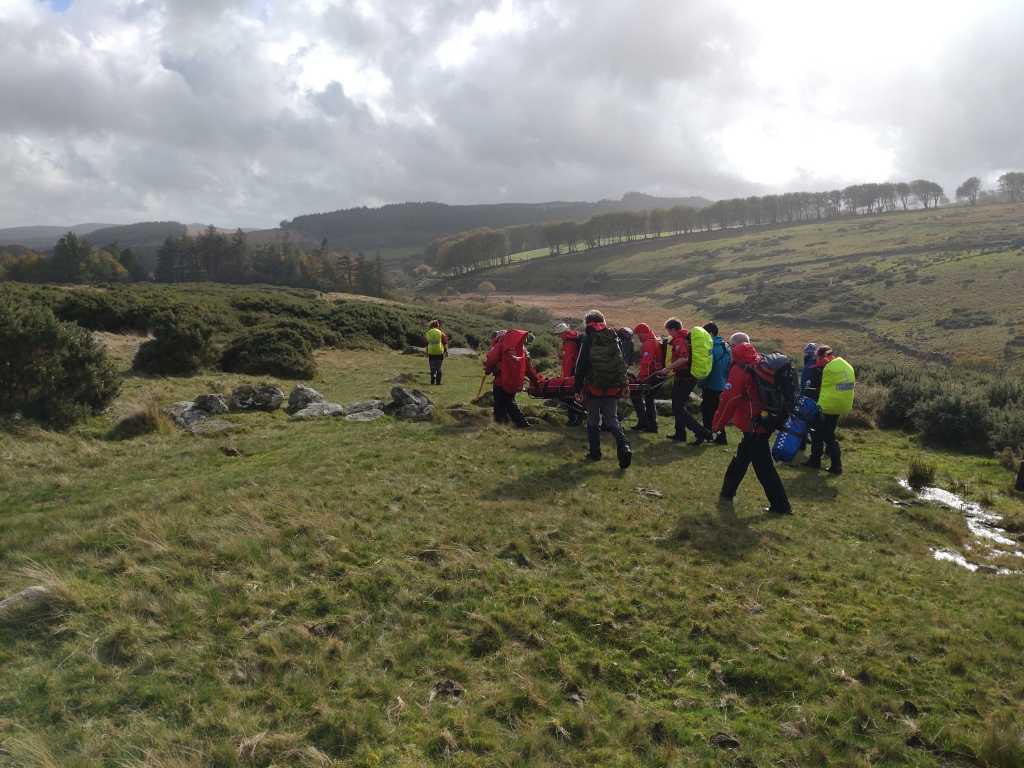Incident 24. The Police called out our team at 12:07 to assist the Ambulance service with a casualty on the open moor, north of Postbridge. A 15 year old female, one of a Dof E expedition training group, had slipped and fallen injuring her right hip and was unable to walk further. The location was near the East Dart River, about 500m south of the Beehive Hut. Our members deployed with a stretcher from Postbridge car park and reached her within 20 minutes. A crew from South West Ambulance Service was met at the site and following assessment she was packaged onto our stretcher and carried over open moorland, and then a tree fallen over the footpath had to be negotiated before handover at the Ambulance at 14:07. We wish her a speedy recovery.