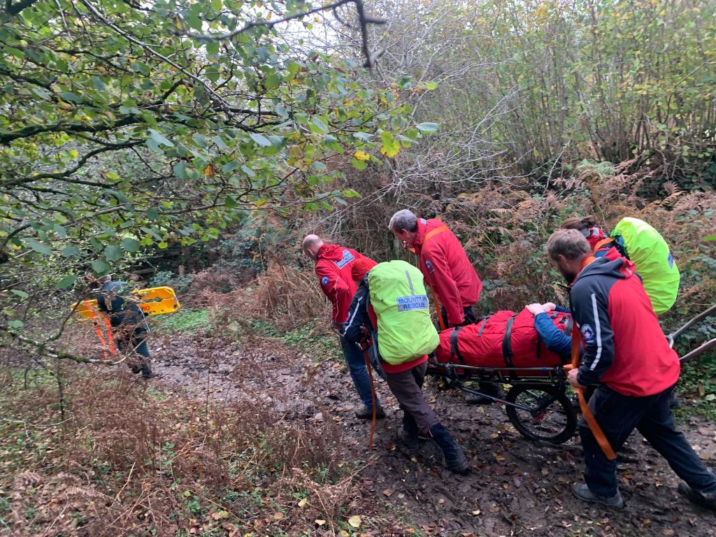 Incident 25. DSRT Tavistock was called by the Police at 16:26 to assist South West Ambulance Service with the evacuation of an injured walker. The 31 year old man had slipped over and sustained a fracture of his right ankle. Our stretcher party reached the casualty site in 30 minutes. Ambulance personnel splinted the fractured limb and administered analgesia before we stretchered the subject along a muddy track, and he was then transferred into the SWASfT Ambulance to be taken to Derriford hospital. We wish him a speedy and uneventful recovery.