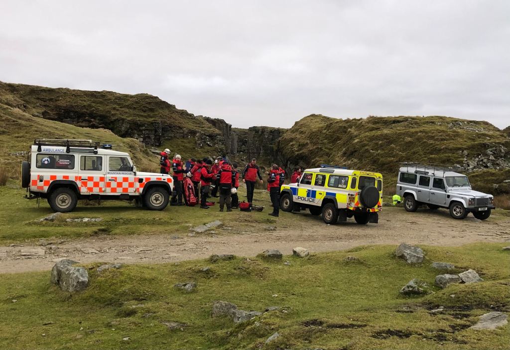 Whilst one of our search managers liaised with the Police to plan the search strategy, a two person team with one of our search dogs from Mountain Rescue Search Dogs England were deployed to search the local quarries which were identified as high probability areas. The Police also launched a drone.