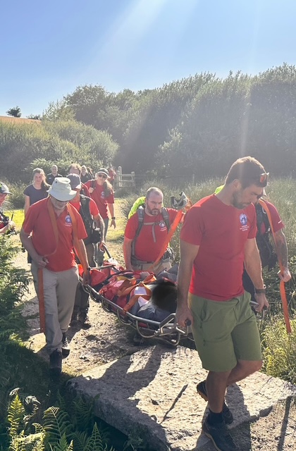 Incident 17. At 16:47 our team deployed a second time this afternoon to evacuate an injured walker from the Pipe Track near Cadover Bridge, covering for DSRT(Plymouth) who were already committed supporting the Hope 24 event. The ambulance crew on scene had already splinted the injured ankle, so we were able to transfer the casualty to the stretcher immediately on arrival and transport her safely along the narrow, uneven path and over the gate to the ambulance waiting in the car park.